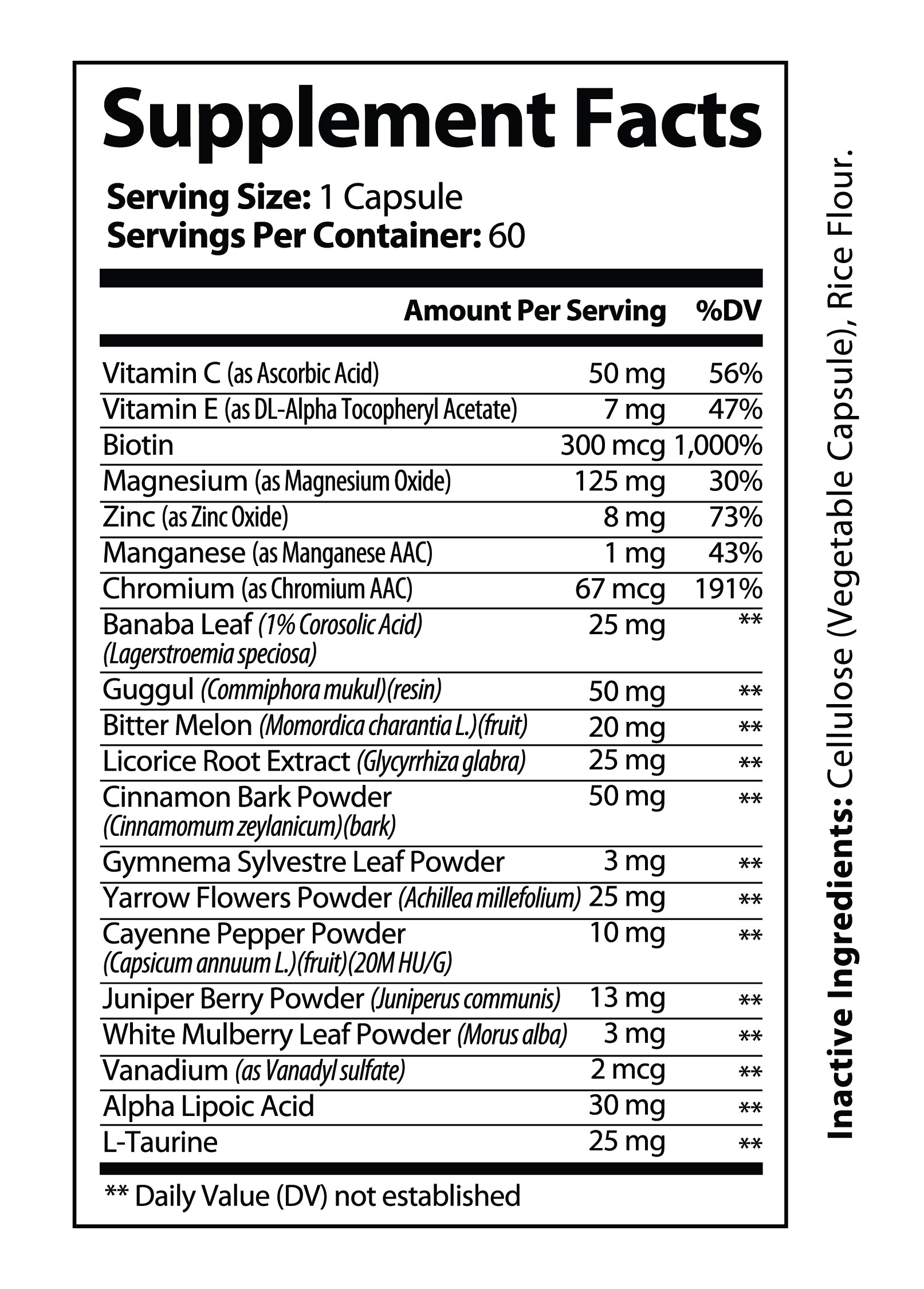 - Banaba Leaf (1% corosolic acid) — 25 mg